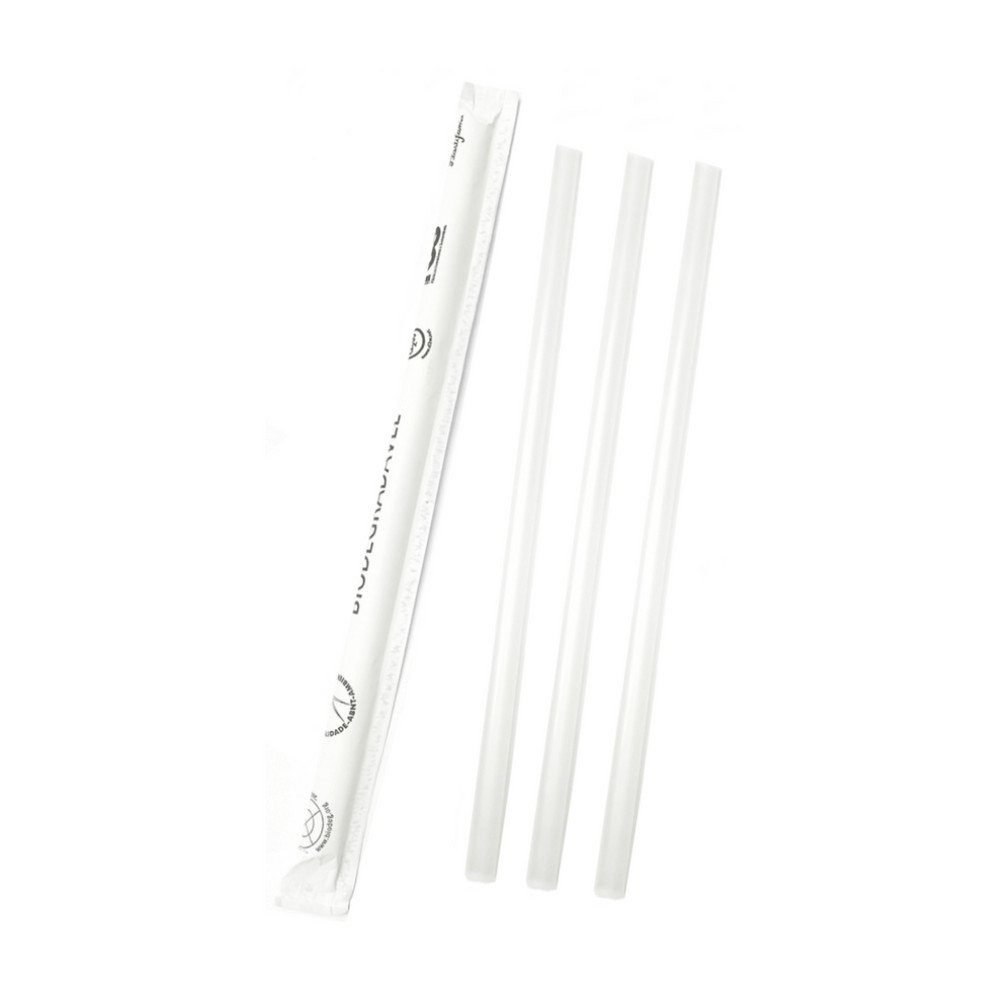 Canudo flexível biodegradável tipo sachê “Glu Glu”, embalado individualmente (um a um), ideal para uso em estabelecimentos alimentícios (restaurantes, lanchonetes, cafés, bares), oferecendo higiene e praticidade ao cliente.