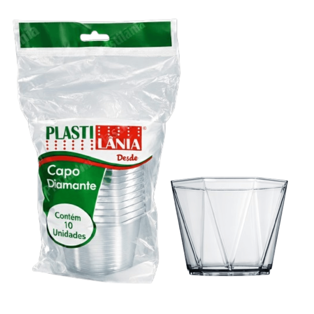 Copo acrílico Diamante na cor cristal,com capacidade de 180 ml, fabricado pela Plastilânia. Leve, resistente e reutilizável, é ideal para servir bebidas frias em festas, eventos, confraternizações e uso doméstico. Possui acabamento transparente que valoriza a apresentação das bebidas, além de ser prático e higiênico. Embalagem com 10 unidades, garantindo praticidade e ótimo custo-benefício.