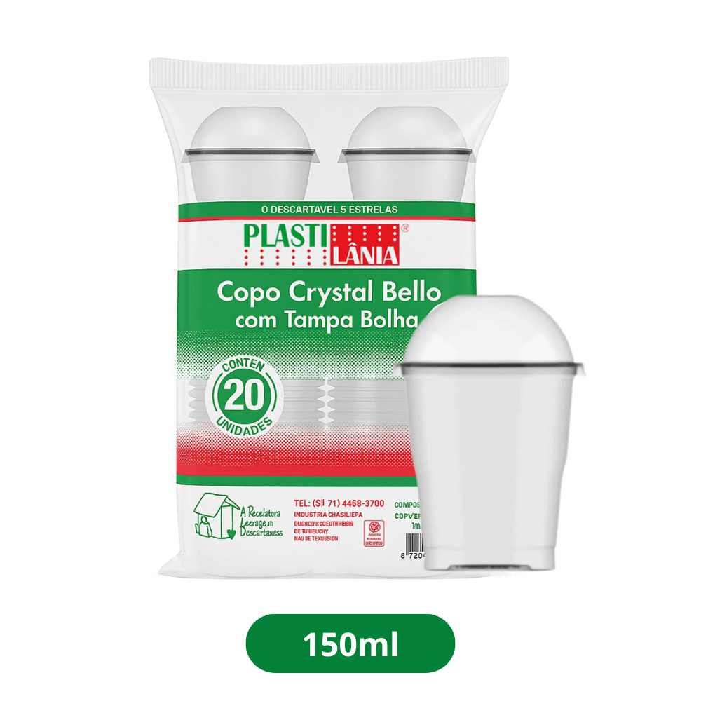 Copo Cristal com Tampa Bolha 150ml Plastilânia 20 Unidades