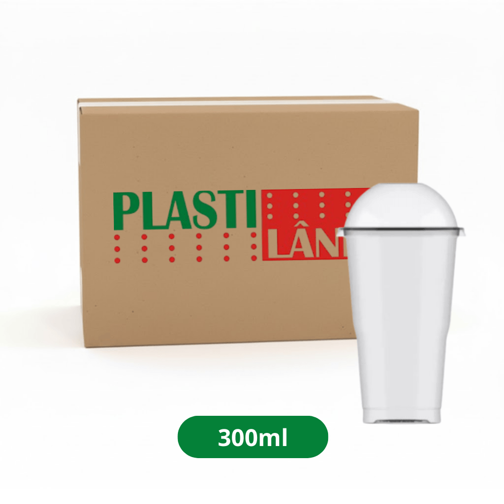 Copo Cristal com Tampa Bolha 300ml Plastilânia 320 Unidades