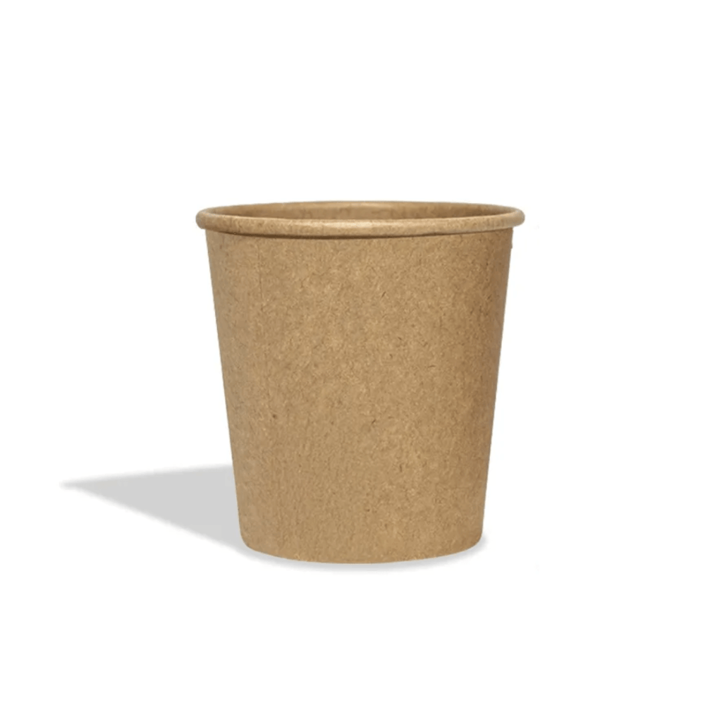 Copo descartável de papel Kraft com capacidade de 180 ml, formato compacto ideal para espresso ou doses. Produzido em papel biodegradável com revestimento interno resistente a bebidas quentes, combina um estilo rústico e ecológico com praticidade.