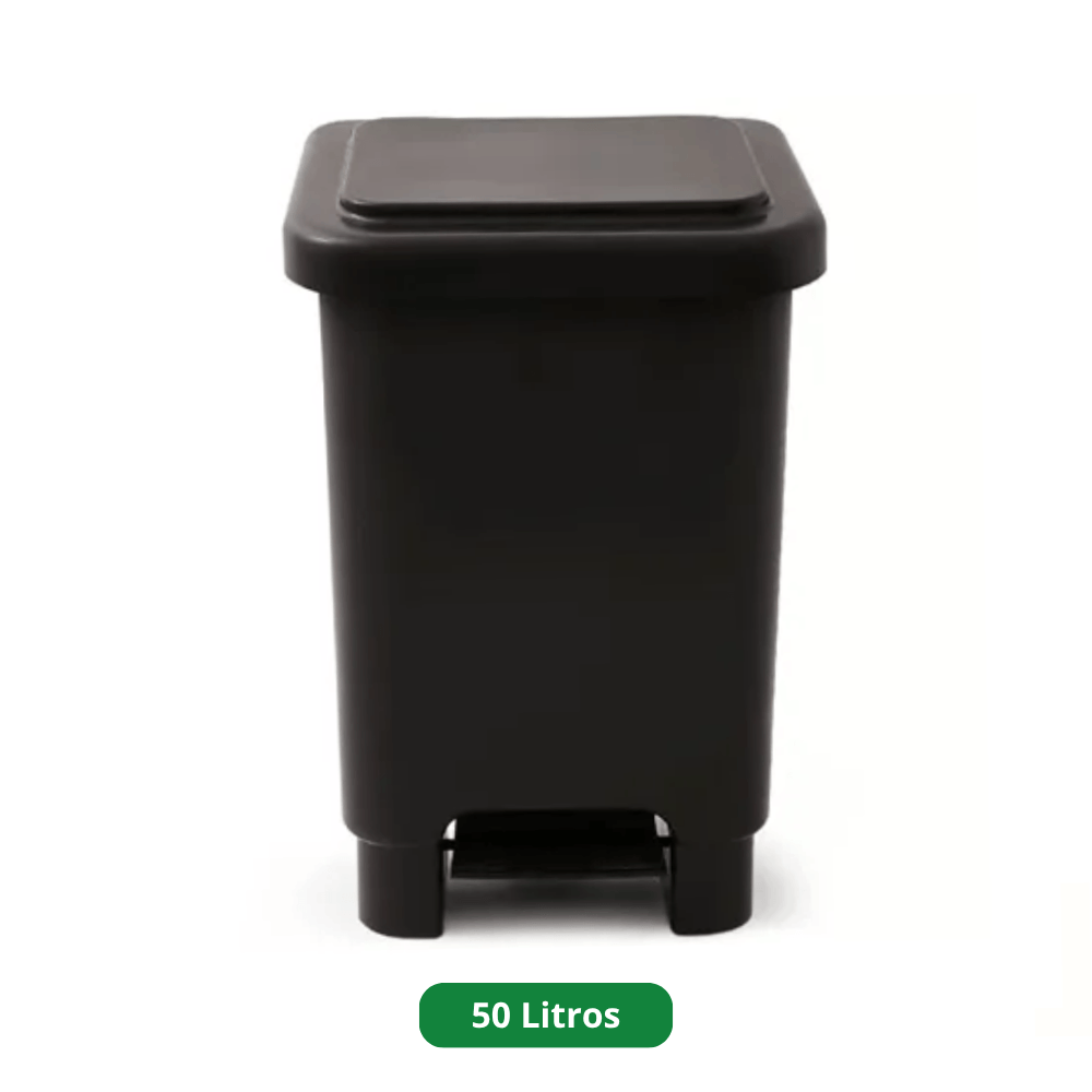 Lixeira Quadrada com Pedal 50 Litros Preta Lar Plásticos