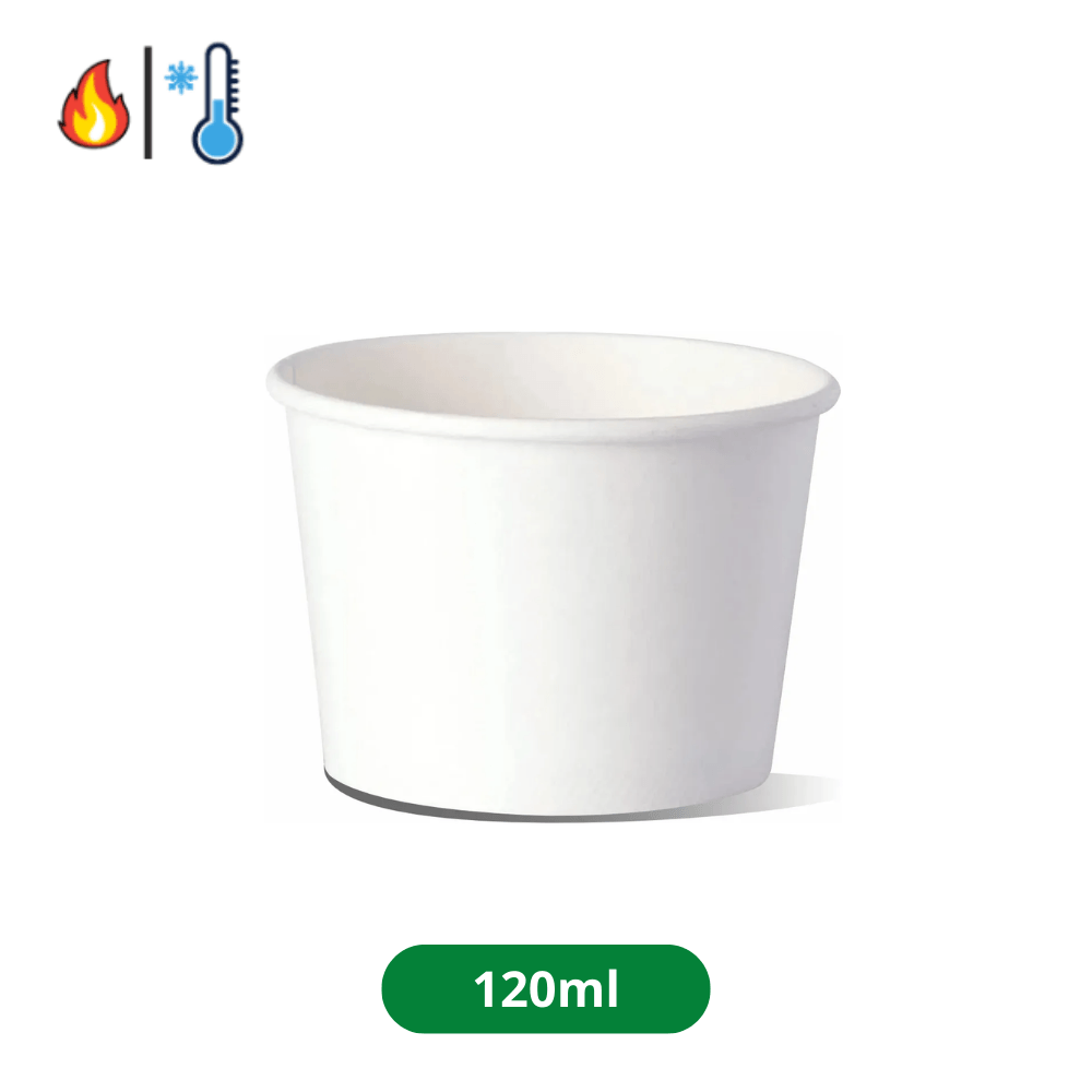 O Pote de Papel de 120ml é a solução ideal para servir seus clientes com praticidade, elegância e responsabilidade ambiental. Este pote é perfeito para alimentos e bebidas em qualquer temperatura, pois suporta sopas, caldos e cremes quentes, ao mesmo tempo que preserva sorvetes, açaí e sobremesas geladas na consistência ideal.