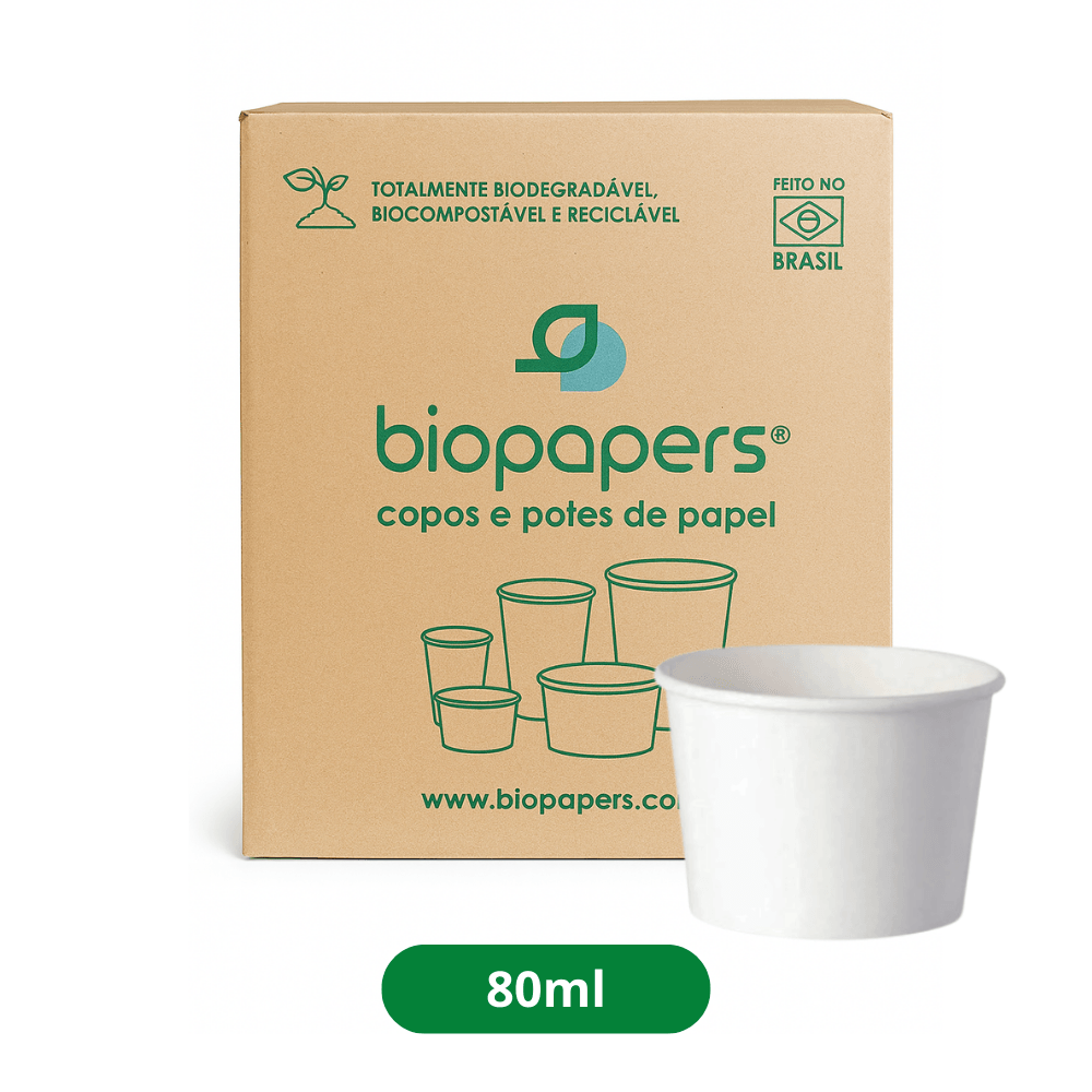 O Pote de Papel de 80ml é a solução ideal para servir seus clientes com praticidade, elegância e responsabilidade ambiental. Este pote é perfeito para alimentos e bebidas em qualquer temperatura, pois suporta sopas, caldos e cremes quentes, ao mesmo tempo que preserva sorvetes, açaí e sobremesas geladas na consistência ideal.