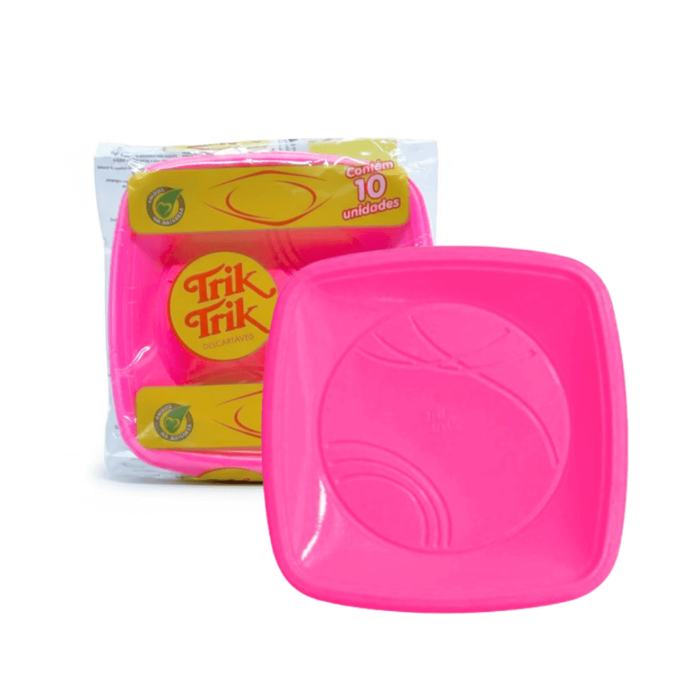 Prato Quadrado Descartável Pink 15cm Trik Trik 10 Unidades